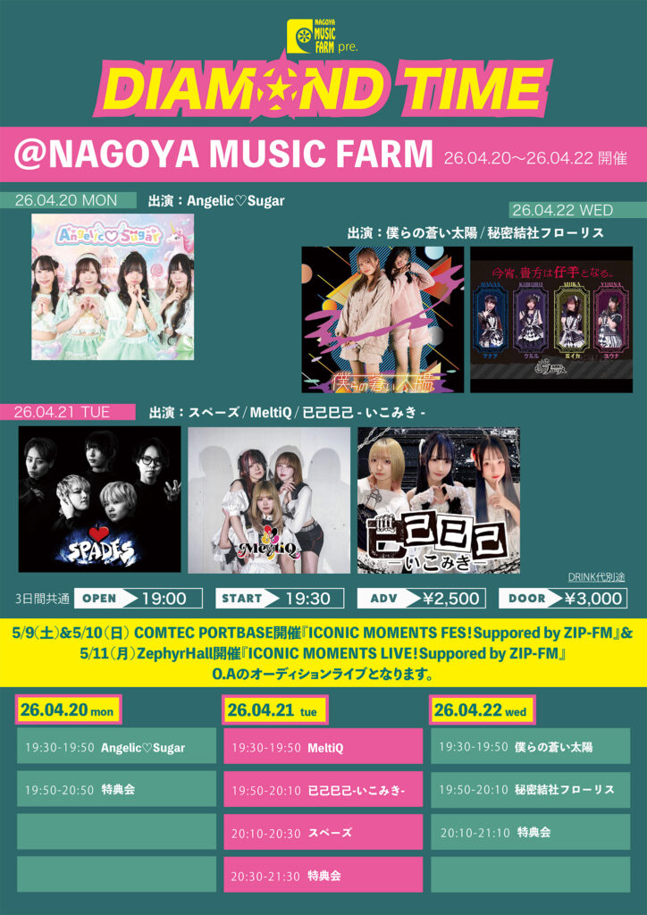 | タイトル | 名古屋MUSIC FARM pre.「DIAMOND TIME DAY3」 |