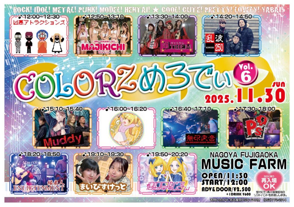 | 出演 | 相田早恥子w まぁの まいびすけっと MAJIKICHI Muddy P’s 縁来人 嬢THEM 乱波250 凶悪アトラクションズ 無印良音 |