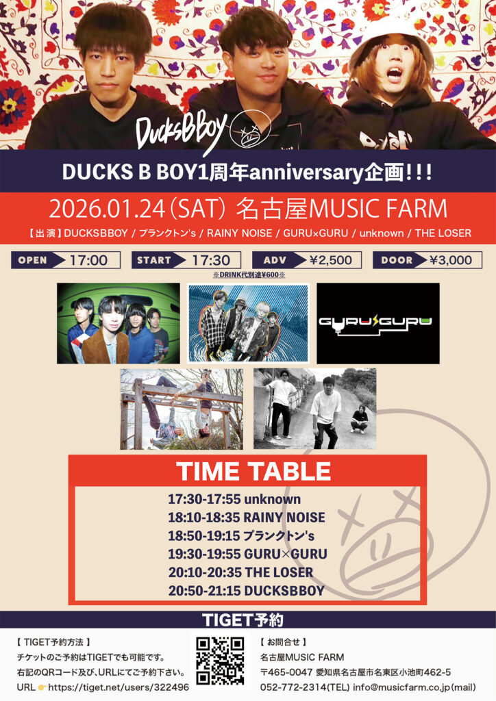 | 出演 | DUCKSBBOY プランクトン’s RAINY NOISE GURU×GURU unknown THE LOSER |